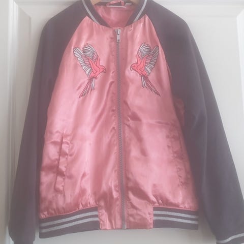 KappAhl barnejakke i størrelse 122 for jenter. Jakken er flerfarget og laget av polyester. Den har hette og er egnet for utendørs bruk.