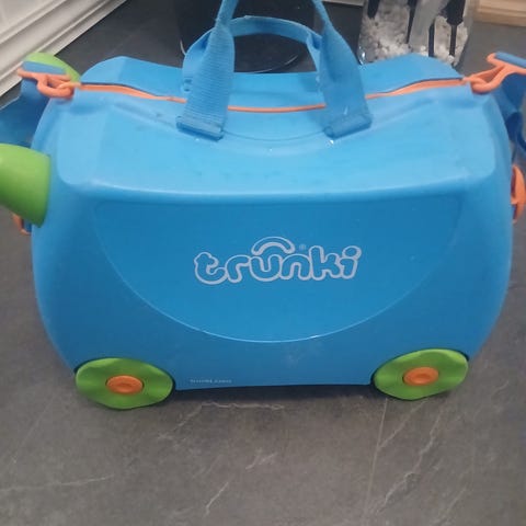 Veldig lite brukt Trunki koffert, blitt med til Spania en gang. Nydelige farger som ikke finnes lengre. Ingen skader, man ser så vidt på sidene at den er litt brukt. Ellers i tipp topp stand! Nypris 999kr! Må hentes.