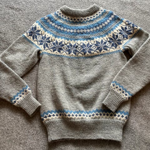 Strikka i Sandnes Alpakka i fargene beige, hvit, rosa og brunmelert