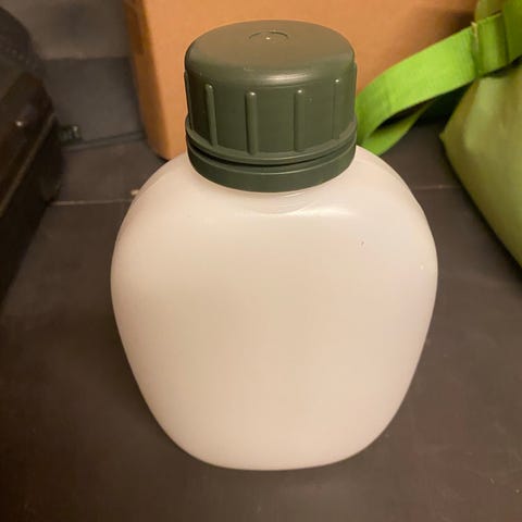 Militær feltflaske med grønn stoffhylse