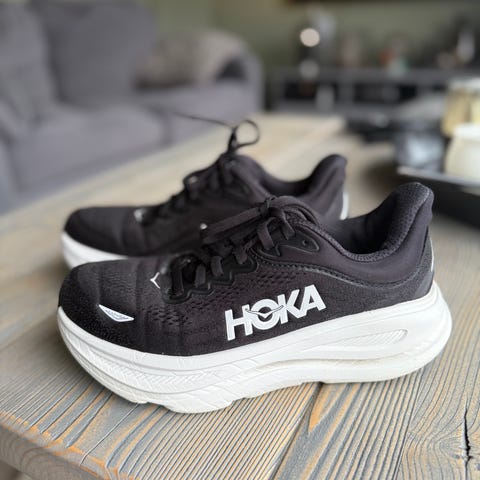 Hoka sneakers/joggesko i størrelse 38. Skoene er svarte med hvit såle og har et design tilpasset løping og daglig bruk.