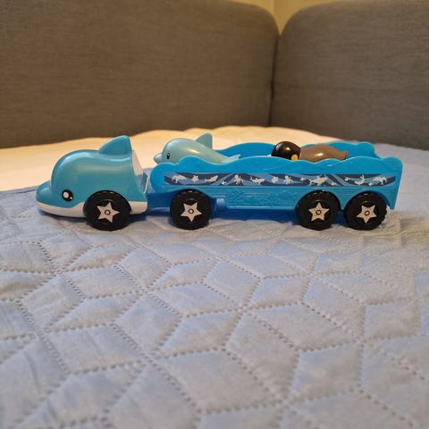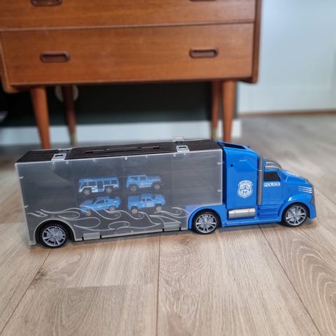 Lekebil. Har vert en fjernstyrt bil men den er ødelagt.