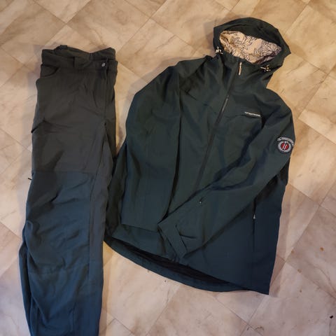 Plommerød anorakk str L/XL ( romslig i str). Kun brukt 1 gang da den ikke passet meg. Vann og vindtett.
