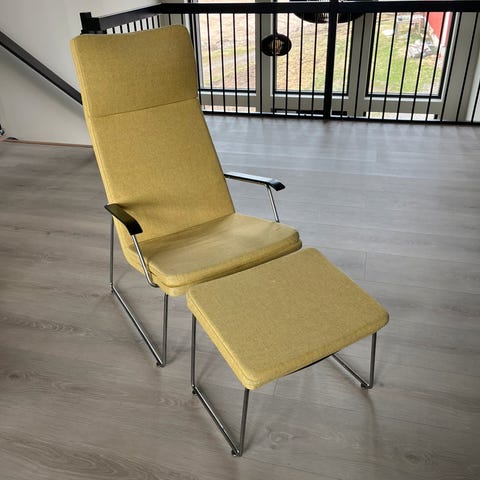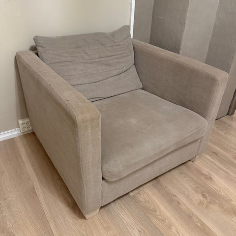 To lenestoler med sort trekk selges. Armlener i tre. Det sorte trekket er litt falmet enkelte steder. Ellers er stolene hele og i god stand. Pris: 400 kr for begge.