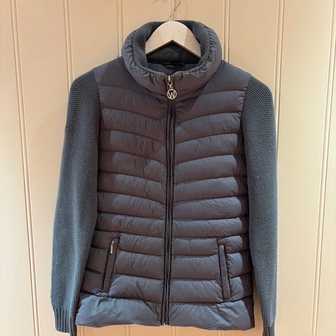 Fin strikkejakke med praktisk glidelås. Frisk og fin farge. Kan sende kr 69,-