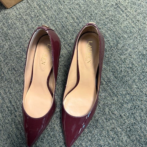 Ralph Lauren i størrelse 38, brun farge med tekstur som minner om krokodillemønster. Hælene har en klassisk design og er 10 cm høy.