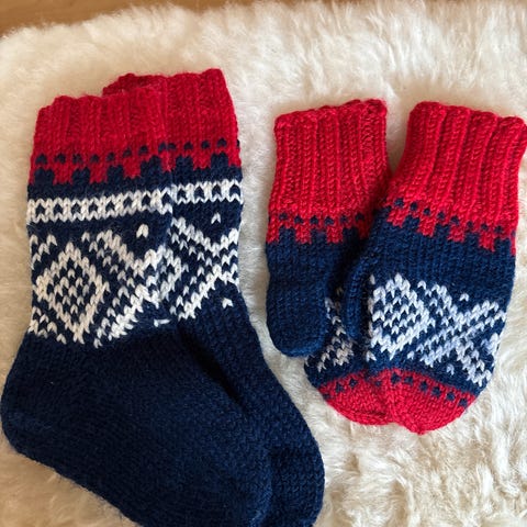 Hvite og blå hjemmestrikk mariusmønster barn