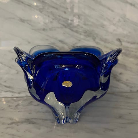 Den har forskjellige blåfarger som hovedfarge med islett av svart og grønt.