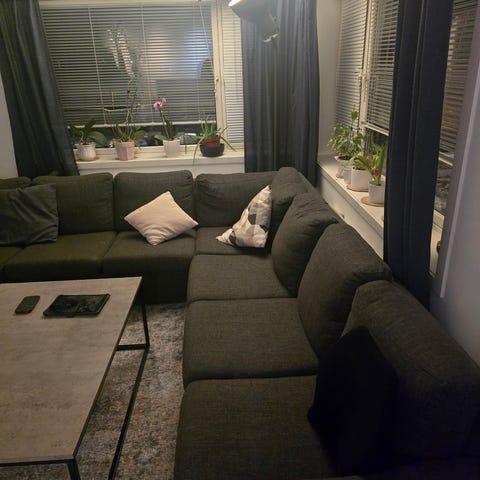 Vi skal dessverre flytte og får ikke tatt med oss denne fine grønne sofaen. Den er brukt av oss i 4 år, men er i god stand. Må hentes av kjøper.