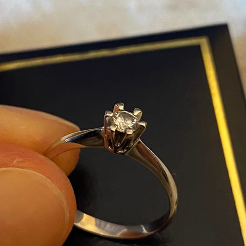 Et blikkfang av en ring som jeg har fått veldig mye komplimenter for. Selges billig fordi jeg fikk den av en eks og ikke bruker den lenger. (Ny mann, ny ring 🥰 )