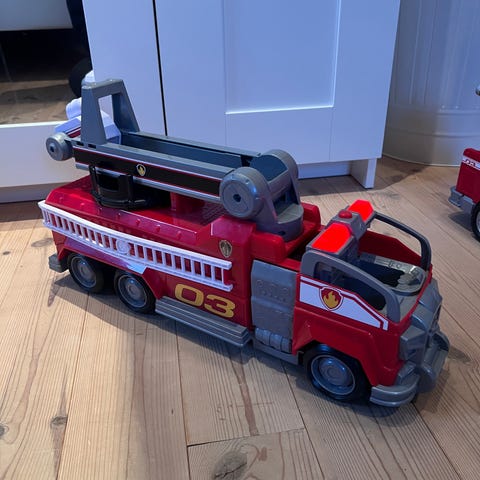 Stor brannbil fra Paw patrol. Lyden virker ikke, mulig det går an å bytte batterier (usikker).