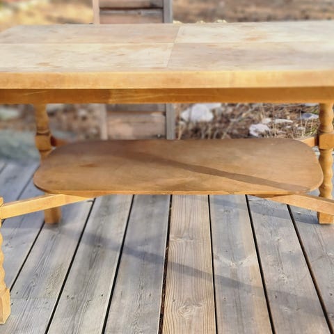 Selger mitt vakre "Dina" salongbord fra Tonning og Stryn. Norsk-produsert i flammebjerk. Bordet har noen merker etter "levd liv" med barnebarn.