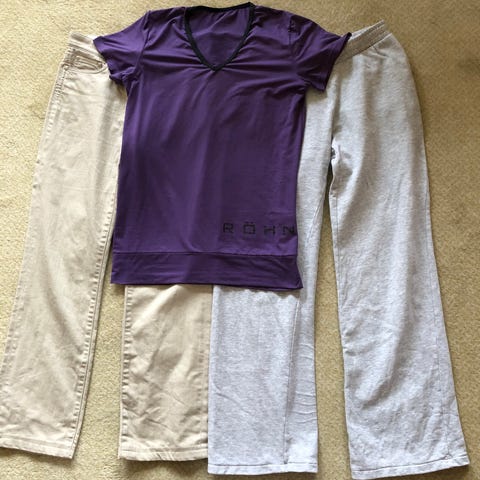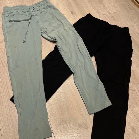 En linshorts fra H&M, tynn treningsbuksr fra Stormberg og tynn joggebukse i viskose fra H&M. Nye og ubrukte