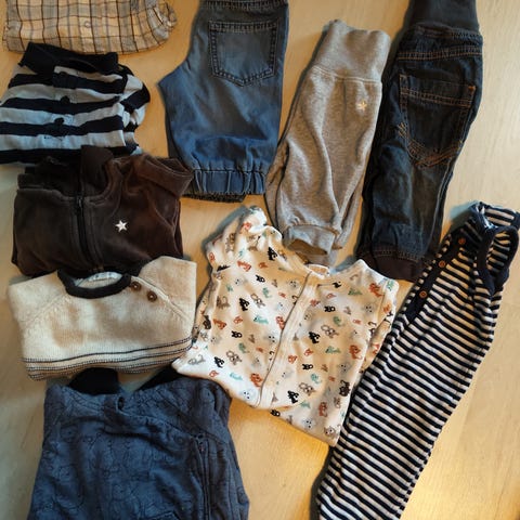 Brukt til ett barn, i god stand. Klær fra Newbie, Name it, Cubus, Hust and Claire, Polarn O. Pyret og H&M.