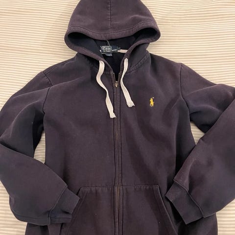 Selger en hettegenser fra Polo Ralph Lauren i klassisk navy blue. En tidløs og stilren hoodie med snor i hetten, perfekt til både hverdagsbruk og mer avslappede antrekk.