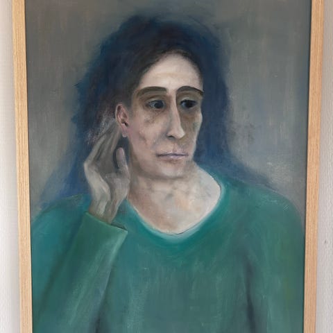 "Ventende" studie av ung kvinne. Oljemaling på lerret 25x36.