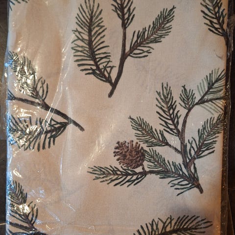 Helt ny, med gull glitrende trå sydd inn. Vanskelig å se og få tatt bilde. Utrolig vakre putetrekk.