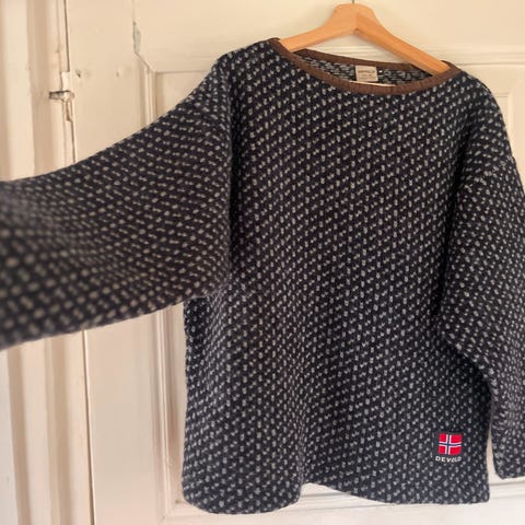 Devold Ullgenser i blå farge, størrelse M for kvinner. Laget av ullmateriale som gir varme og komfort.
