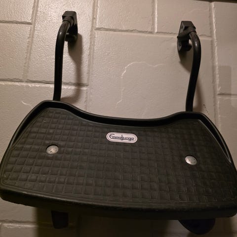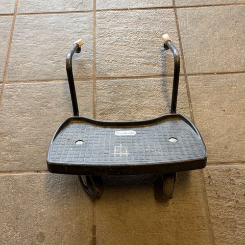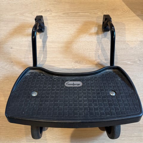 Pent brukt søskenbrett fra Emmaljunga. Fungerer som det skal! Har stanga som skal festes på vognen, men har bare ikke skrudd den av vognen ennå. Usikker på alle modellene det eventuelt kan brukes til, men vi har brukt det på Duo Edge.