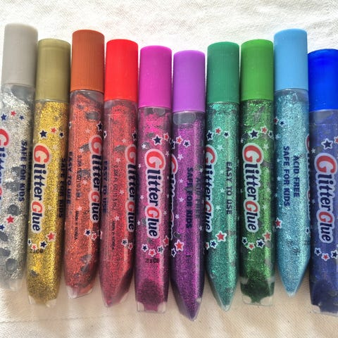Pakke med 11 forskjellige farger med glitterlim.