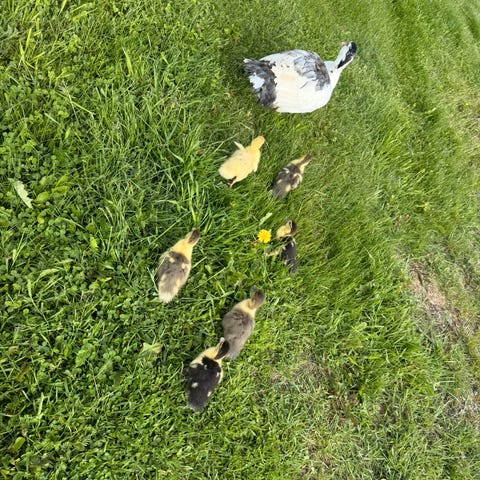 Venter andunger av blanding løpeand og moskusand. En hybrid som har fått det beste av begge raser.