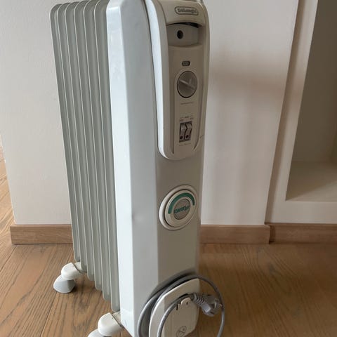 Delonghi konvektorovn med digital termostat og kontrollpanel. Utstyrt med hjul for enkel flytting. Farge: grå. Passer for oppvarming i ulike rom.