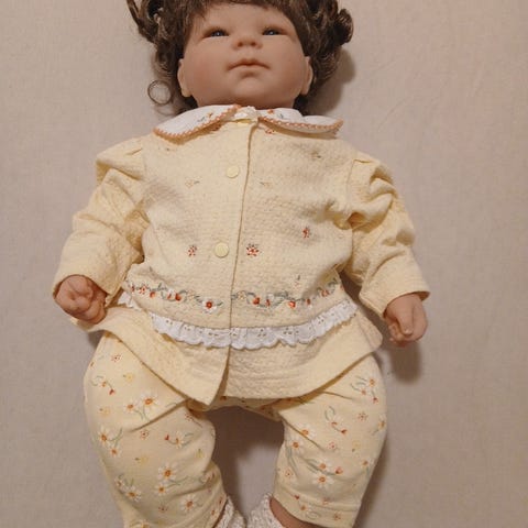 Liten baby dukke.ca 40cm lang .Signert bak hodet. Boutique baby 2010