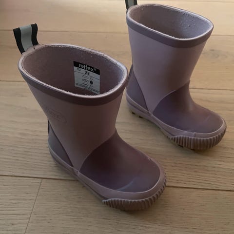 Reflex gummistøvler str 22, farge rød med hvite detaljer og refleks bakpå.