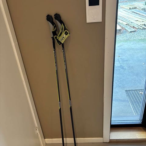 Fischer langrennski staver i gul og svart farge. Passer for bruk ved langrenn og skiaktiviteter.