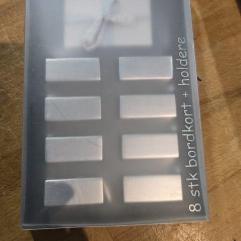 Bordkort fra Kremmerhuset. 8 stykker i eske. Helt ny, aldri var i bruk.