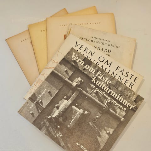 Fire hefter selges samlet for oppgitt pris. Hefte fra Norsk folkemuseum datert 1970 med 48 rikelig illustrerte sider. Hefte fra Lands Museum utgitt i 1975 på 30 sider, hefte om Hadeland på 60 sider, og Verneverdie hus i Valdres på 32 sider. Kan være interessant for deg som er historisk interessert arkitekt, byggmester, tømrer, snekker osv, eller jobber med bygningsvern, tradisjonshåndverk eller annet antikvarisk arbeid eller med gamle hus.
