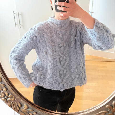 Ubrukt, Håndstrikket Genser med Snøfnuggmønster❄️ (Lyseblå /Hvit)