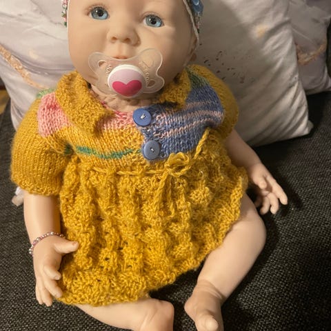 Dukke, silikon hode,armer og bein. Ca.50cm lang.Ikke synlig signering.