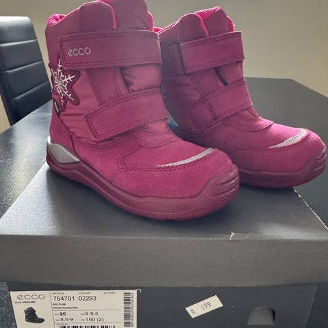 Geox barn vinterstøvler i størrelse 26, designet for jente. Støvlene er rosa med dekorative mønstre og har borrelås for enkel justering. Innvendig foret med mykt materiale for varme og komfort.