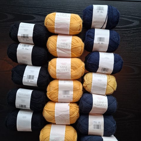 Garn er 70% acryl og 30% ull.