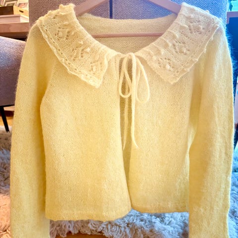 Str S og strikket i orginalgarnet fra strikkepakke kr 750