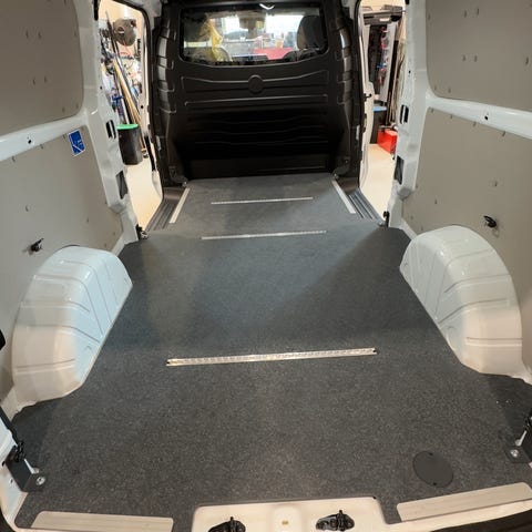 Bil lastegulvbeskyttelse i svart materiale. Designet for å beskytte lasteområdet i varebil mot slitasje og skader. Passer for bruk i varebiler med tilsvarende innvendige mål. Kommer fra 2016 L3H3 veldig fin stand. Følger og med kapsler over hjulbuer bak