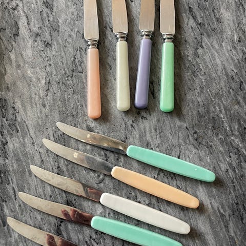 Dette er Tramontina ,biffgafler , trehåndtak Dette er Tramontina , melrom, Cristiania , VINTAGE DEXTER, vintage brødkniv, skje,
