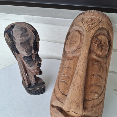 Dekorativ skulptur i svart steinmateriale. Skulpturen har et abstrakt ansikt med tydelige ansiktstrekk. Egnet som interiørdekorasjon for hjem eller kontor.