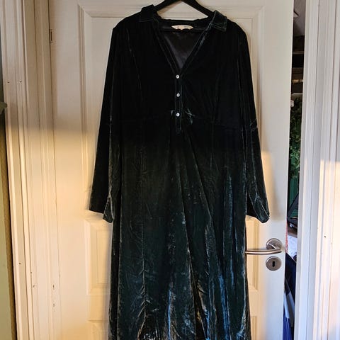 Ellos hverdagskjole i fløyel, grønn farge, størrelse XXL for kvinner. Kjolen har et enkelt design egnet for hverdagsbruk.
