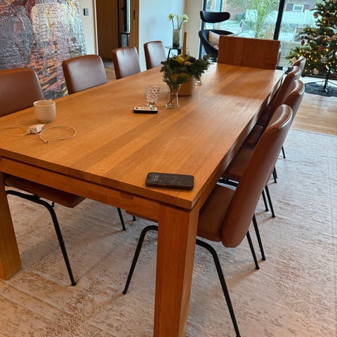 Spisebord selges.Følger med to klaffer.Disse må filses noe i feste.