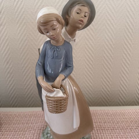 Søt og dekorativ porselensfigur fra Nao by Lladró, kjent for sitt detaljerte og elegante håndverk.