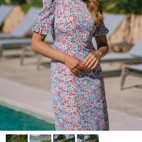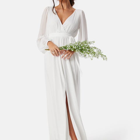 Nydelig kjole med lange arme, knytebelte i midjen og splitt. Brukt en gang. Perfekt til for eksempel bryllup. Ny pris 1250kr. Str xl