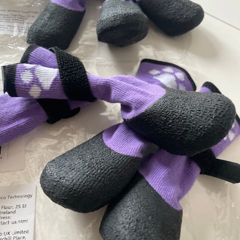 Designet for å beskytte poter, og holde dem tørre på regnfulle turer. Laget av mykt og slitesterkt materiale.