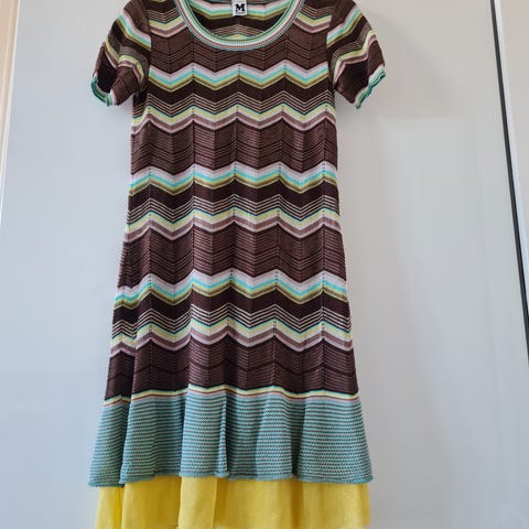 Missoni hverdagskjole i størrelse S, laget av silke. Kjolen har brun farge og er designet for kvinner. Materialet gir en glatt og lett tekstur, egnet for daglig bruk. Kjolen er fra Julie Fagerholt. Ikke Mussolini, da dette merket ikke var å finne. Jeg betalte 5200,- for kjolen. Selger den for 2400.-