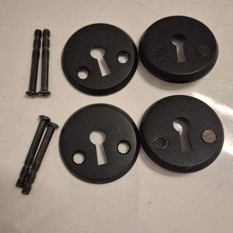Møbelhjul med festeplate og medfølgende skruer. Farge svart. Egnet for montering på møbler eller utstyr som krever bevegelige hjul. Fire hjul inkludert.