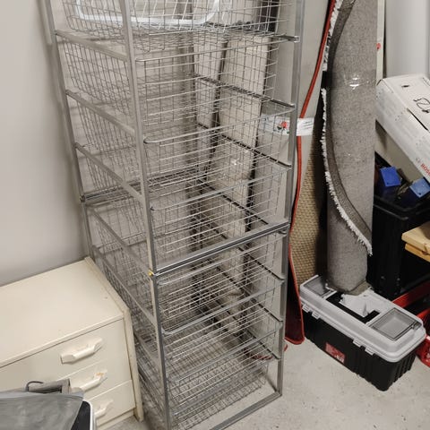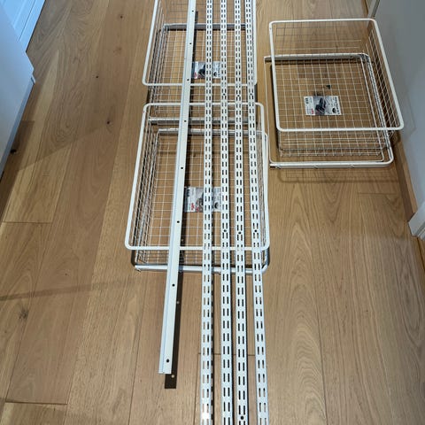 Elfa 55 trådkurver i metall, egnet for oppbevaring og organisering. Kurvene har en trådstruktur som gir god ventilasjon og oversikt over innholdet.