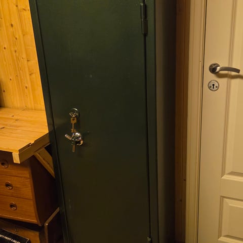 Size 6, godkjent for inntil 50.000 i cash så ganske solid skap kontra ordinære våpenskap.