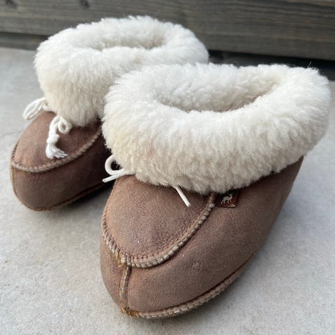 Pent brukte tøfler som passet her rundt 1-1,5 års alderen. Sålen er 12cm. Brukt til et barn. Litt lysere farge på tuppen av tøflene, men ellers lite synlig bruksslitasje, og masse bruk igjen!