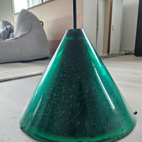 Taklampe i grønt glass. Ny/ubrukt. Selges da den ikke passet på tenkt sted.